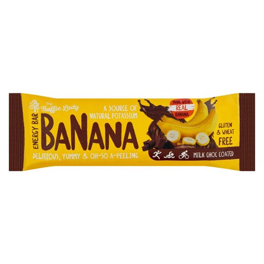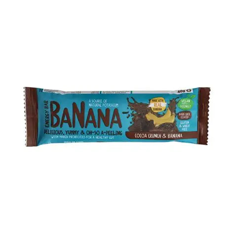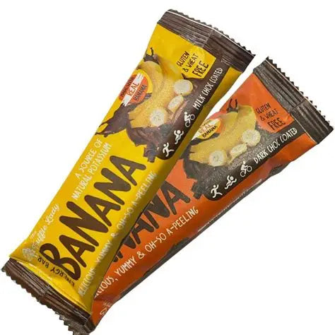 The BANANA Chocolate Energy Bar is Wheat-Free and is packed with POTASSIUM. This gives you loads of ENERGY with a Natural Boost. PLUS the added PRIOBIOTICS promote a Healthy Gut!