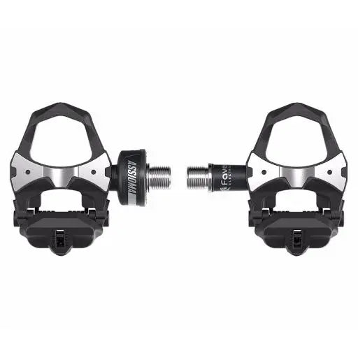 Assioma cycling power meter with power sensor on the left pedal. These single-sided power meter pedals are easy to install and transfer from one bike to another just like normal pedals, easily and without extra tools.