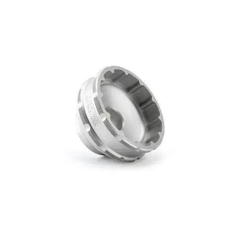 A precision CNC-machined aluminum tool for the installation and removal of select threaded bottom brackets with 12-notch tool fittings, including SRAM® BSA DUB®, Race Face® Cinch®, Rotor® BSA30, and others. Manufactured in-house by Park Tool, anodized for easy identification and featuring a ratchet/torque wrench-compatible 3/8" drive.