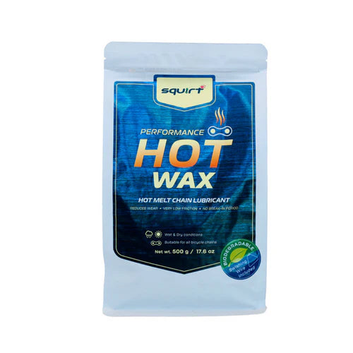 Squirt Performance Hot Wax is a high-performance molten wax chain treatment that was engineered for cyclists who demand efficient, clean operation, extreme durability, and scientifically optimized drivetrain protection. Built from a refined blend of inherently biodegradable paraffinic and synthetic waxes, Squirt Performance Hot Wax offers exceptional penetration, low friction, and long-lasting performance — even under the toughest racing and adventure conditions.